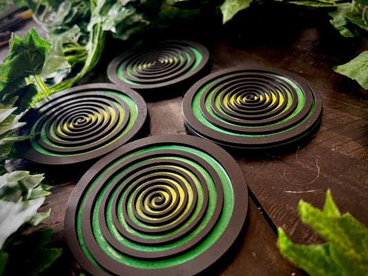Coaster Set - 3D Psycho Swirls Dual Layer Sealed Wood with Cork Backing