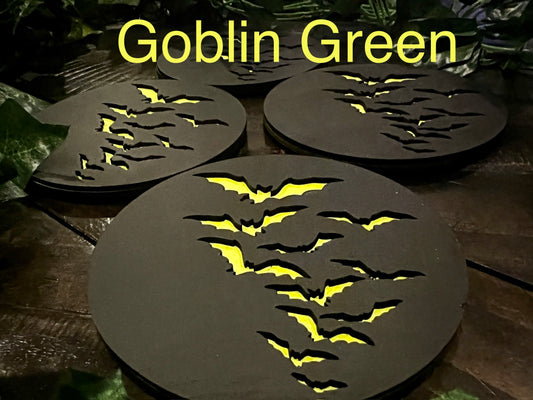 Coaster Set - 3D Engraved Bats Wooden with Cork back (set of 4)