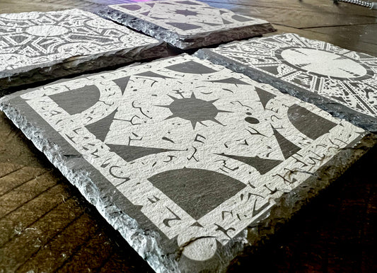 Coaster Set - Puzzle Box engraved on Slate (set of four) Hellraiser