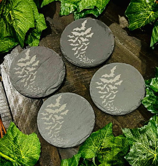 Coaster Set - Bats! Engraved on Slate (set of 4)