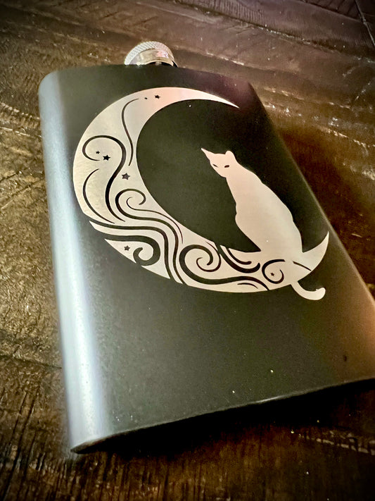 Flask - Cat & Moon 8oz (includes funnel)Stainless Steel