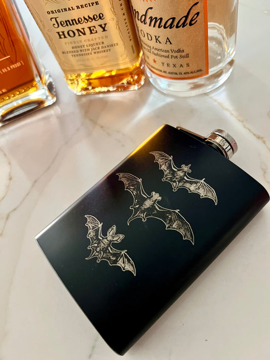 Flask - Bats & Moon 8oz (includes funnel) Stainless Steel