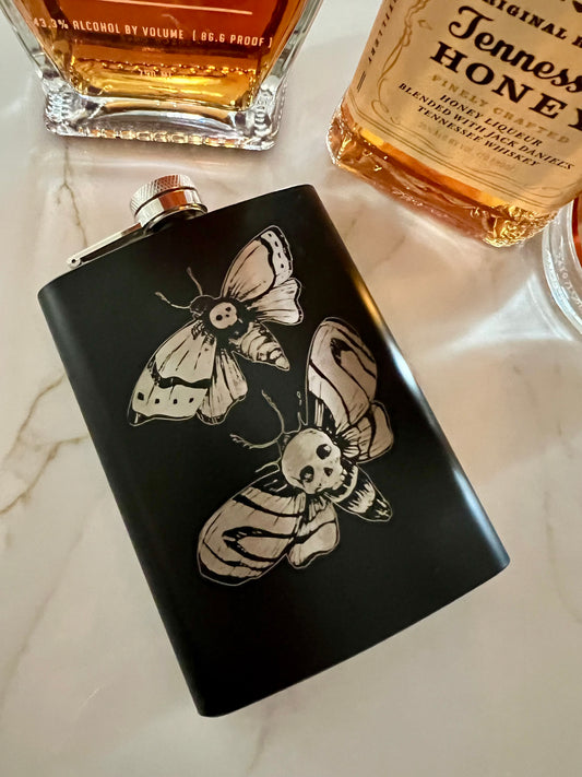Flask - Death Moths Stainless Steel 8oz (includes funnel)