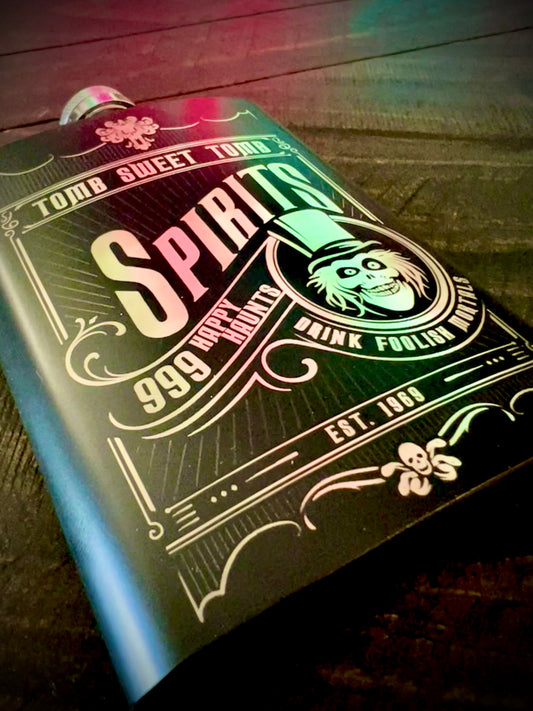 Flask - Haunted Mansion Spirits 8oz (includes funnel) Stainless Steel Hatbox Ghost