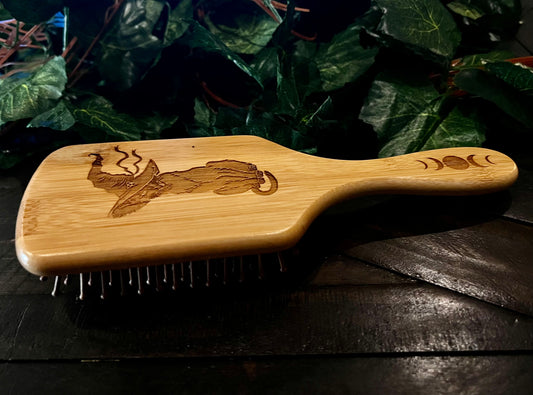 Hairbrush - Victorian Bat Engraved on Bamboo Handle