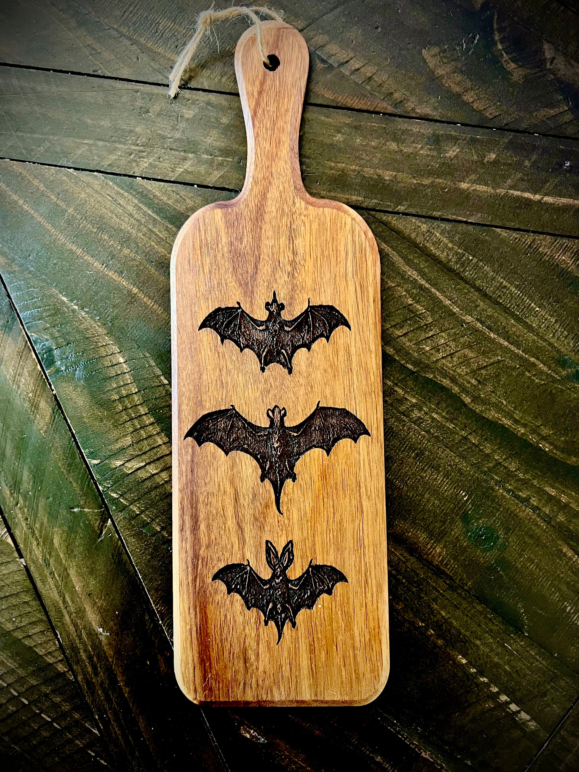 Charcuterie Board - Classic Bats engraved on beautiful Acacia Paddle Shaped Board 16” X 5” Serving Tray