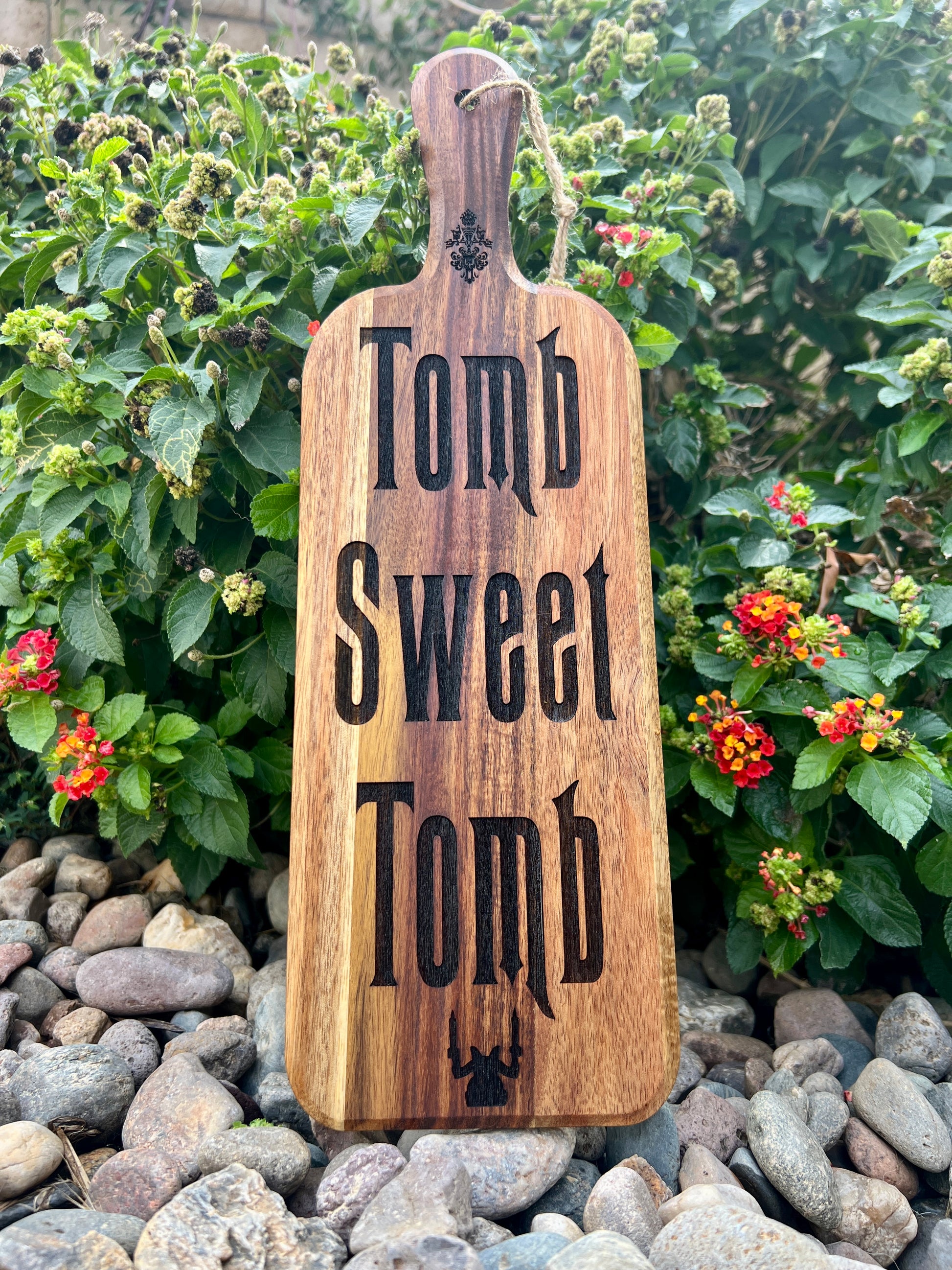 Charcuterie Board - “Tomb Sweet Tomb’ engraved on beautiful Acacia Paddle Board 16” X 5” Serving Tray