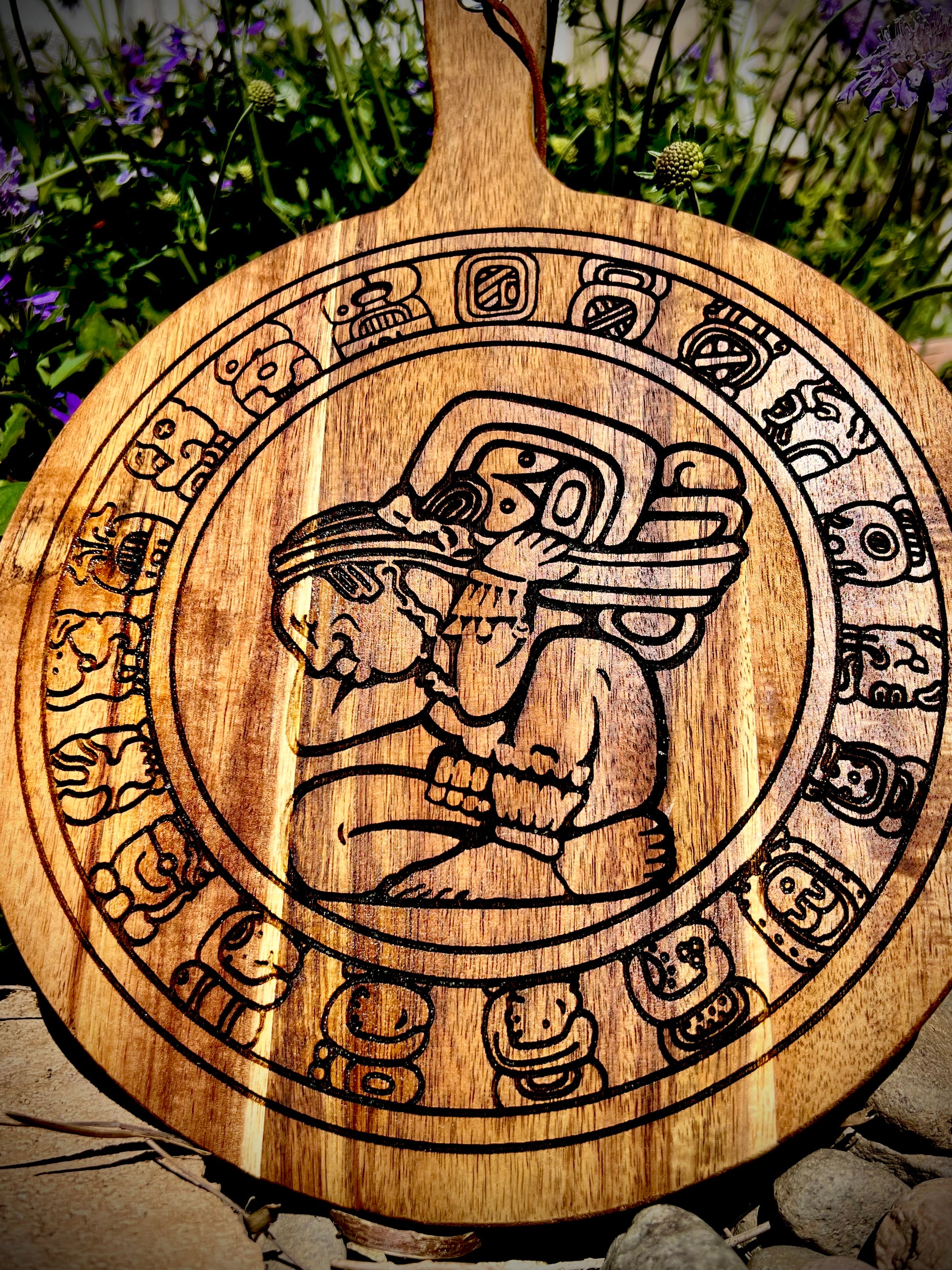 Charcuterie & Cutting Board - Mayan Calendar engraved on beautiful round acacia Tzolk’in