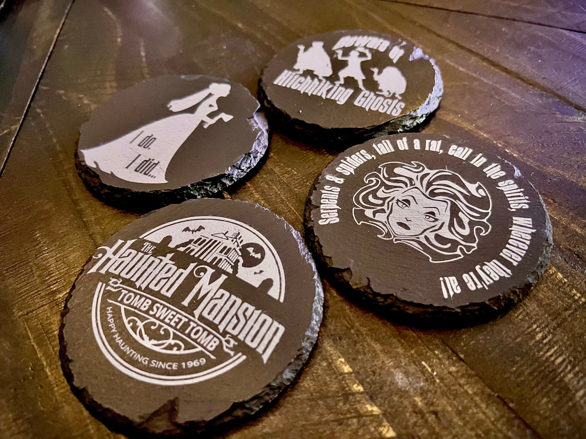 Coaster Set - Haunted Mansion etched on Slate (set of four)