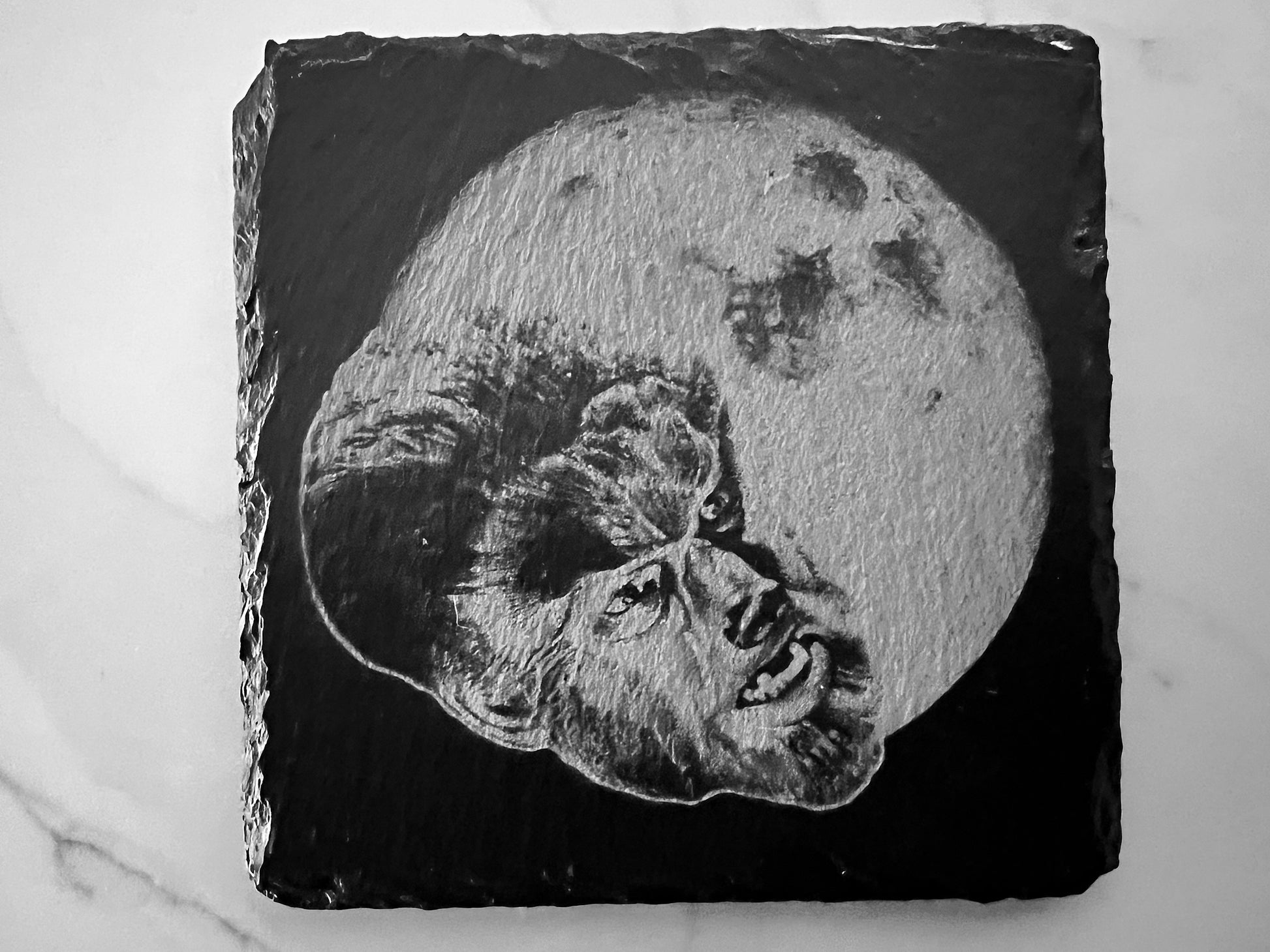 Make your monster mash come alive with this classic slate coaster set featuring Universal Monsters! Delight your friends with Frankenstein, Bride of Frankenstein, Dracula, and The Wolfman beautifully engrained onto slate, perfect for making sure your guests don't get spooked! Don't let your drinks get scared - grab this one-of-a-kind set!