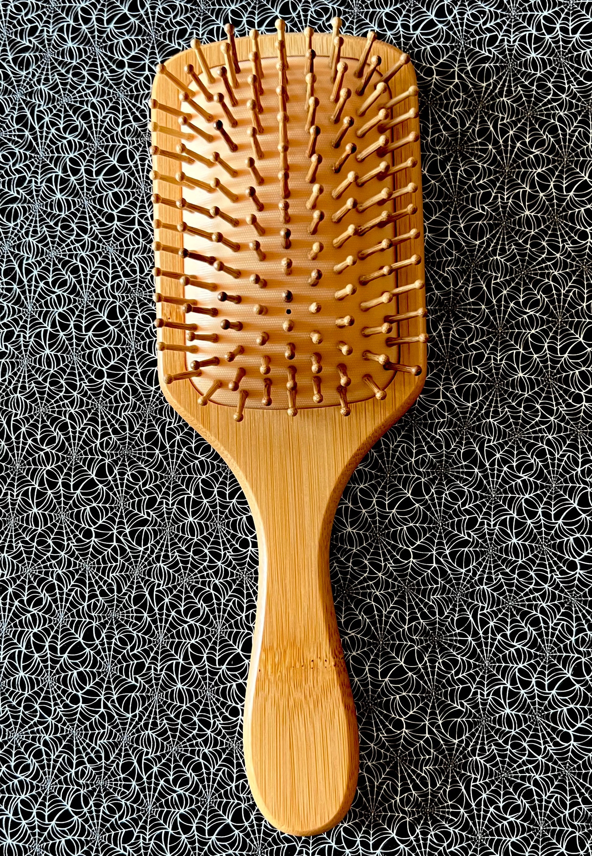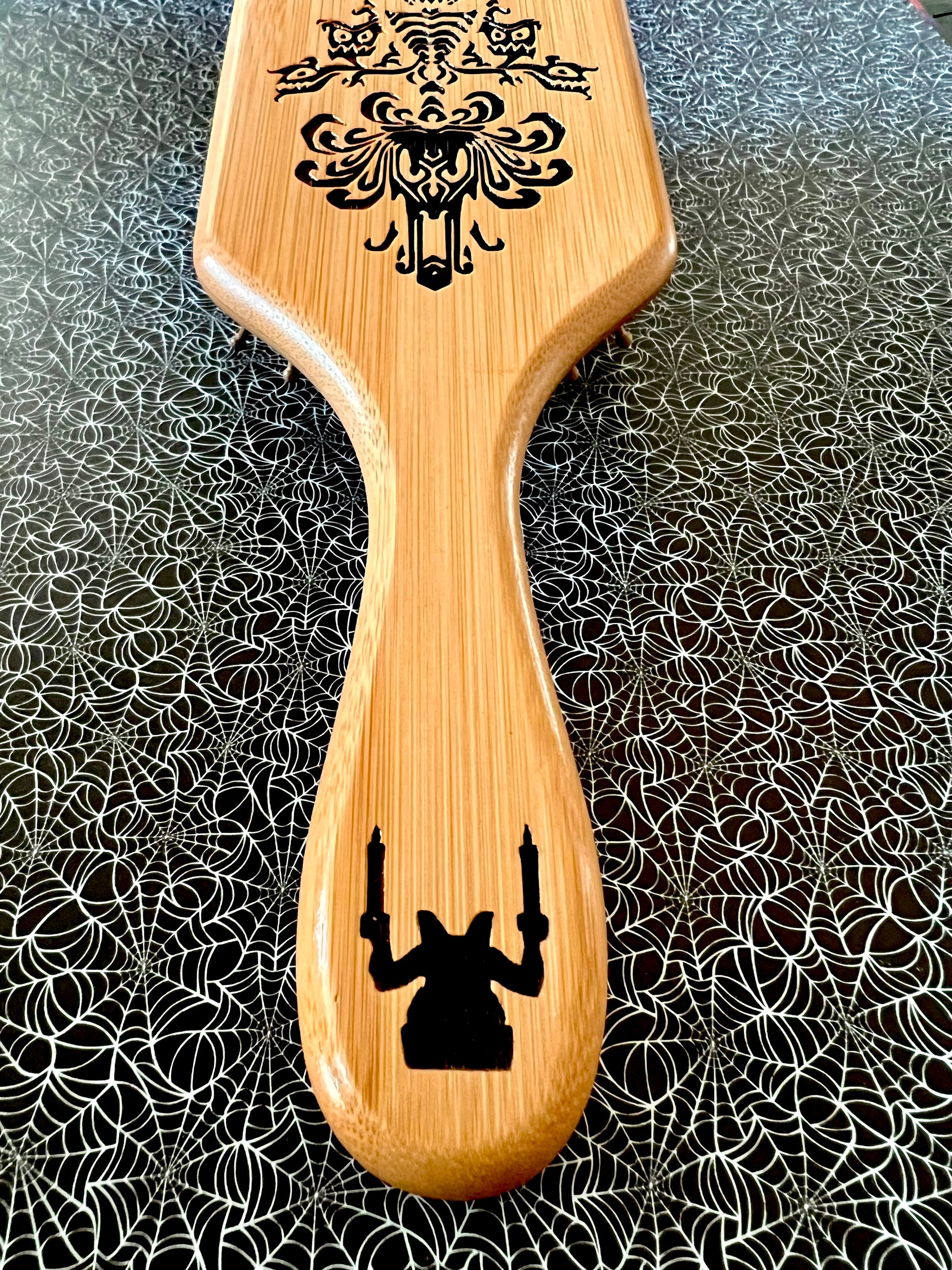 Hairbrush - Haunted Wallpaper Engraved on Large Bamboo Paddle Handle