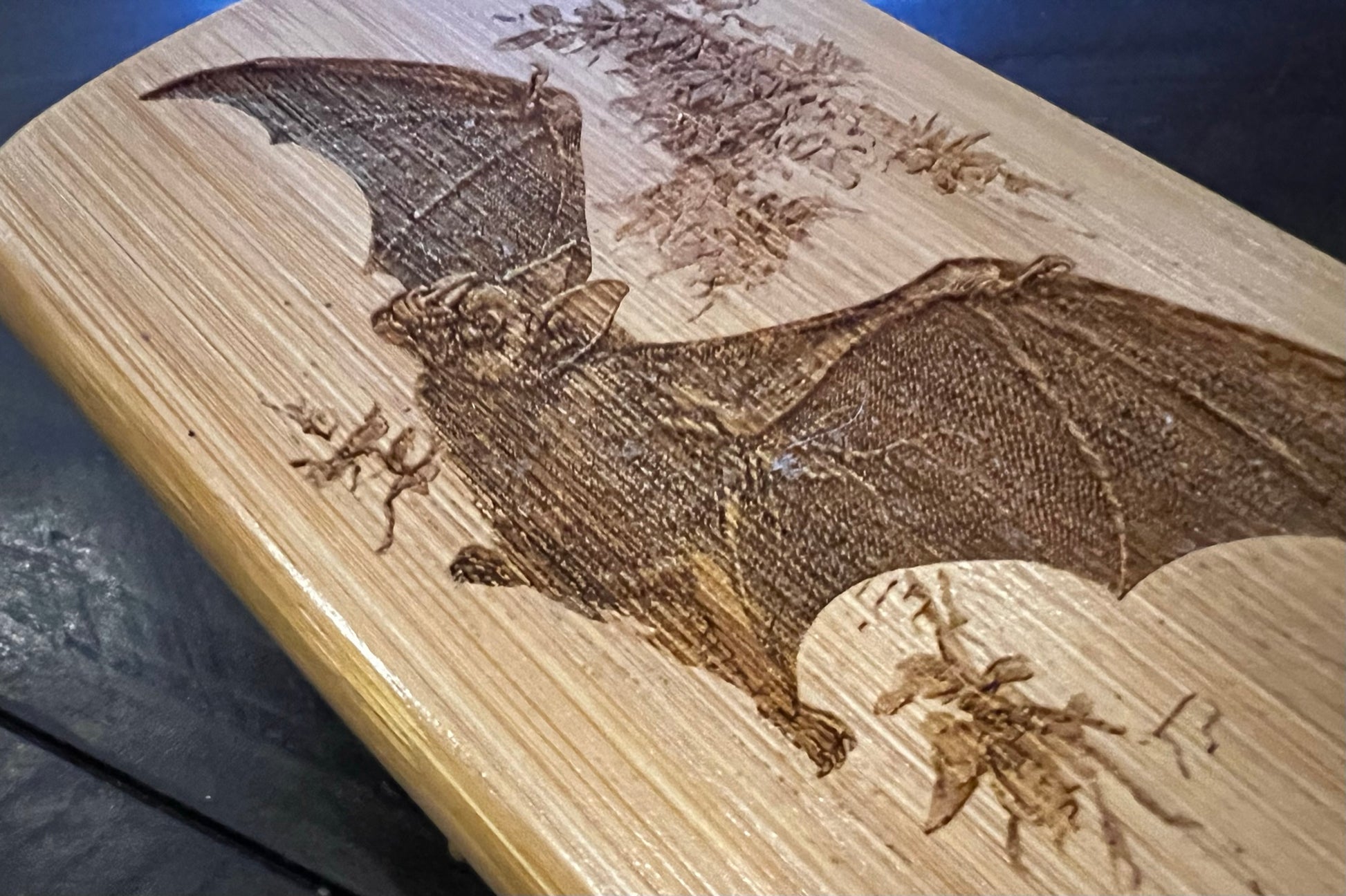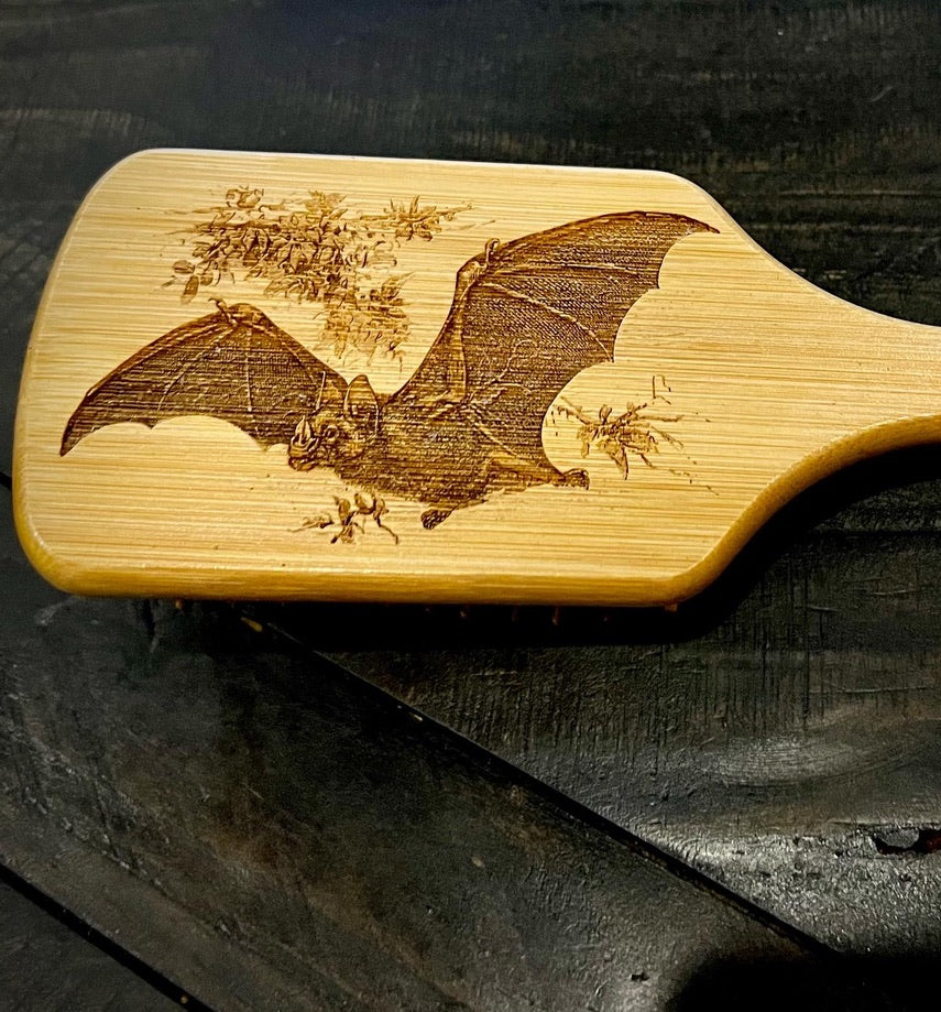 Hairbrush - Victorian Bat Engraved on Bamboo Handle