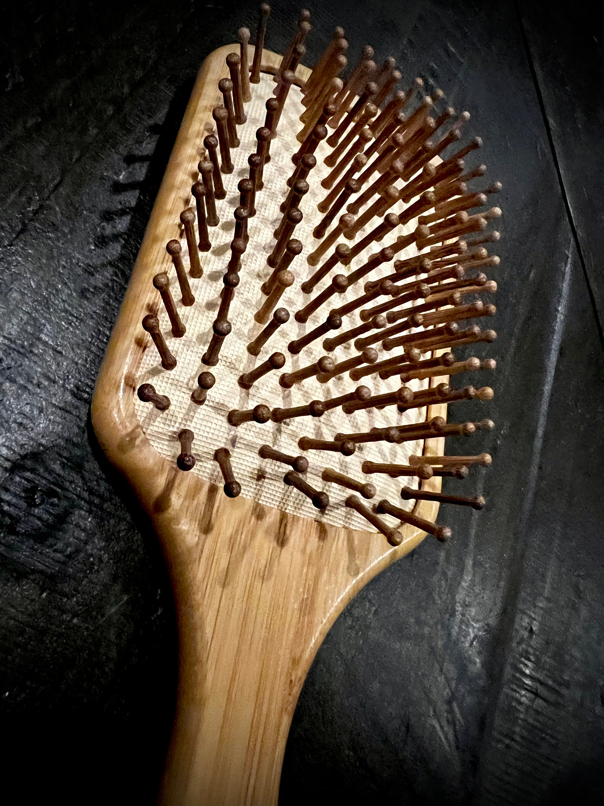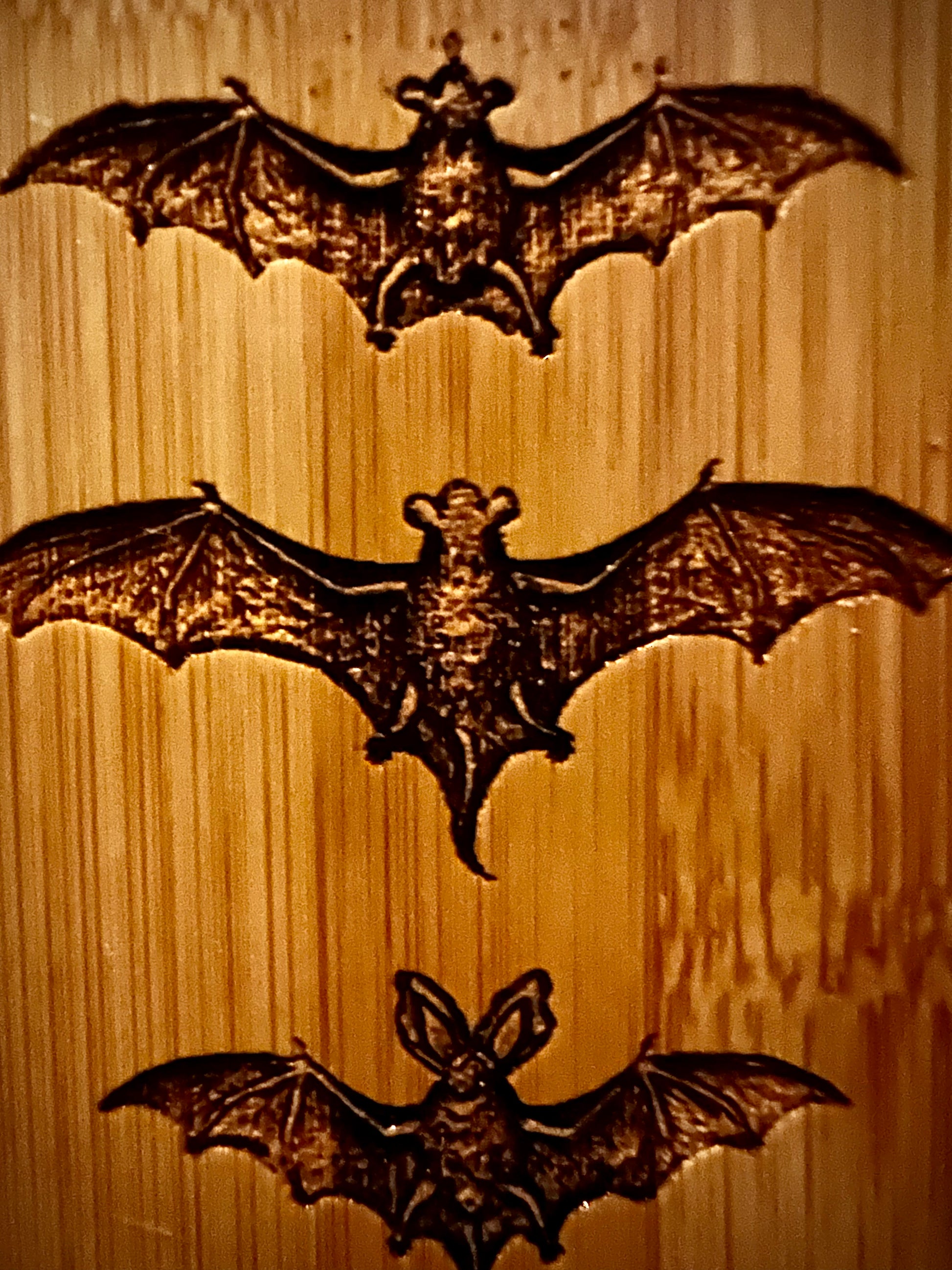 Hairbrush - Triple Bat Design Engraved on Bamboo Handle