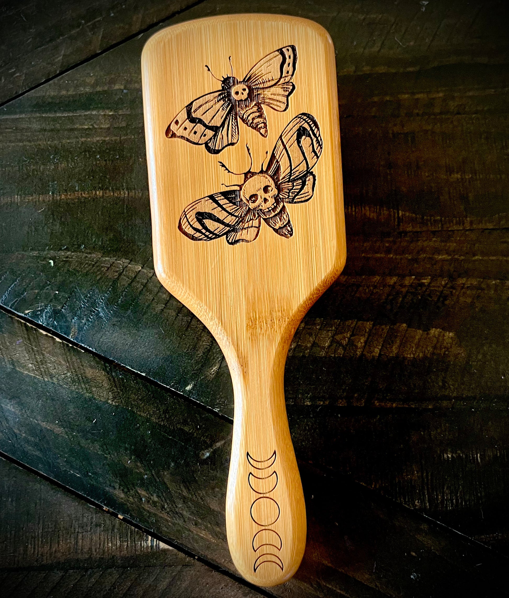 Hairbrush - Death Moths Engraved on Bamboo
