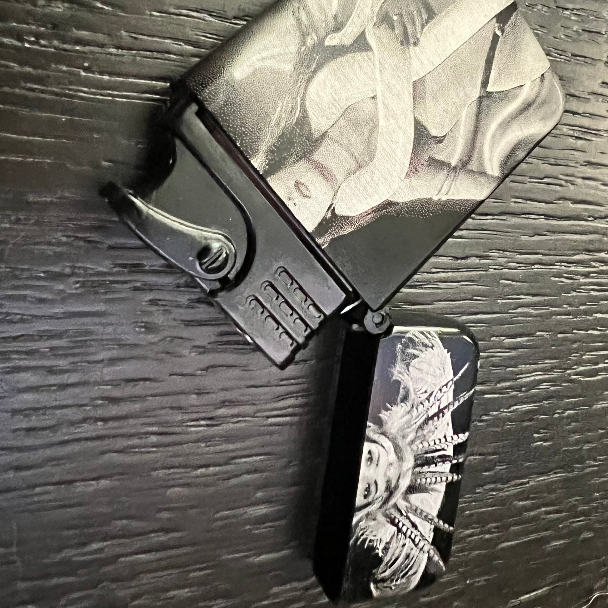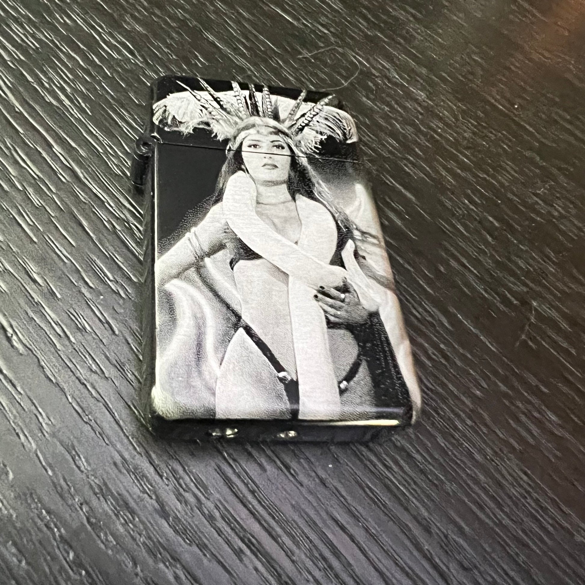 Embody the dark allure of Santanico Pandemonium with this refillable, adjustable butane lighter. Featuring a striking red torch flame and engraved with the iconic Vampire Queen, it combines sinister elegance with practical design. Perfect for fans who crave a chilling accessory that burns fiercely as the night deepens. From Dusk Till Dawn. Salma Hayek
